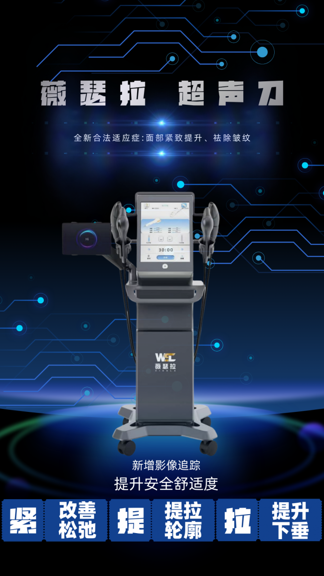 表皮层的干纹细纹、真皮层的胶原流失、脂肪层的移位下垂、以及最深层的SMAS筋膜层的松弛,共同构成了复杂的衰老表象。传统的抗衰手段往往只能触及某一个层面,难以实现全层次的精准治疗。而薇瑟拉超声刀的出现,正是为了解决这一难题——它是一款专门针对皮肤各个层次进行全面抗衰的新一代聚焦超声治疗仪。